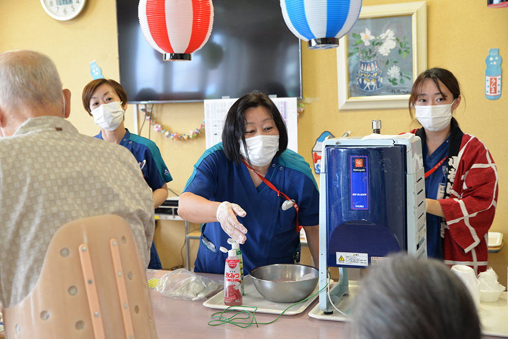 行事食や月に一度のお出かけランチ(丼や麺類など)、季節のフルーツなどバリエーションに富んだ食事提供も行っています。(クックサーブでの対応)